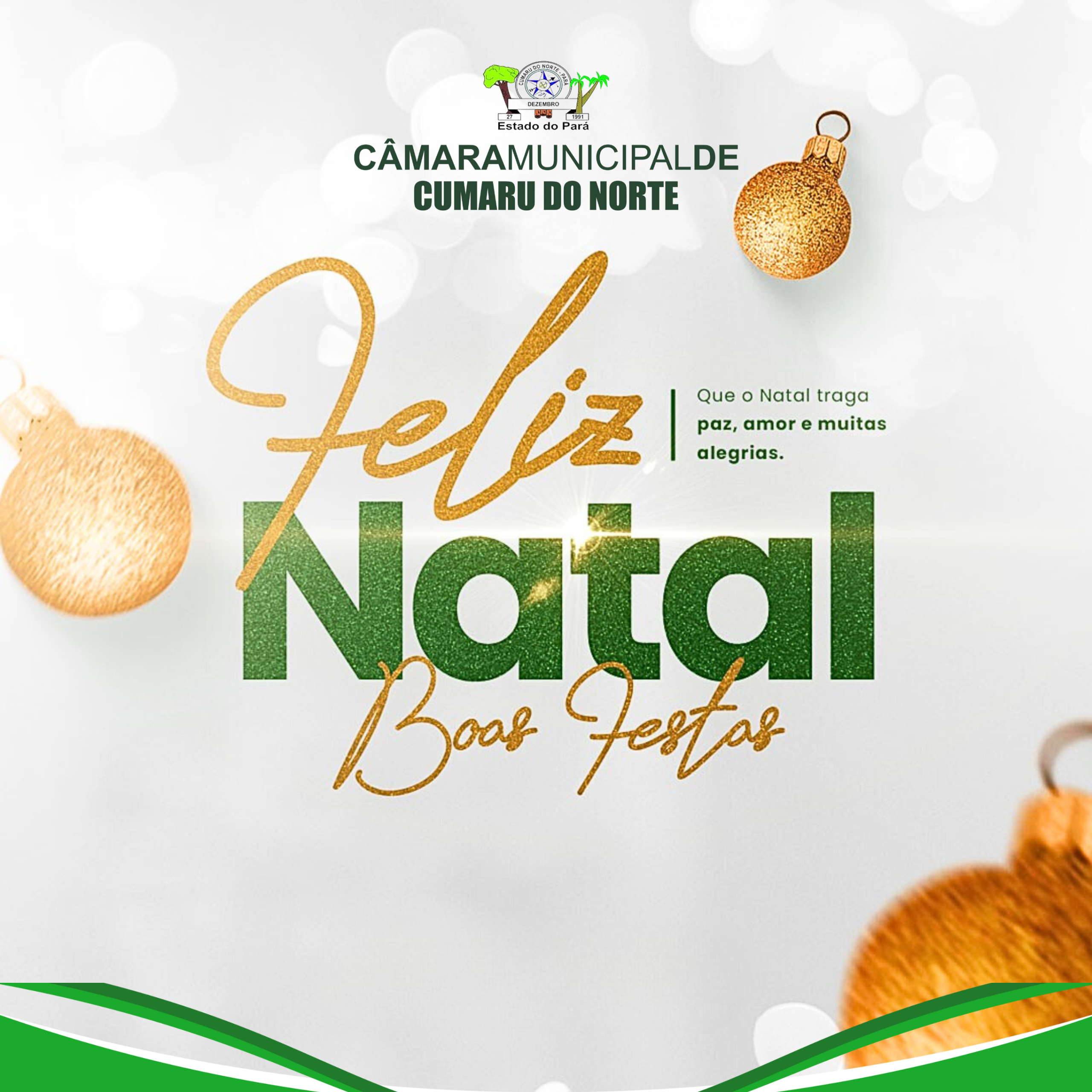 A Câmara Municipal de Cumaru do Norte, Poder Legislativo, deseja a toda a população um Feliz Natal, repleto de paz 🕊️, amor ❤️, fé 🙏 e esperança 🌟.